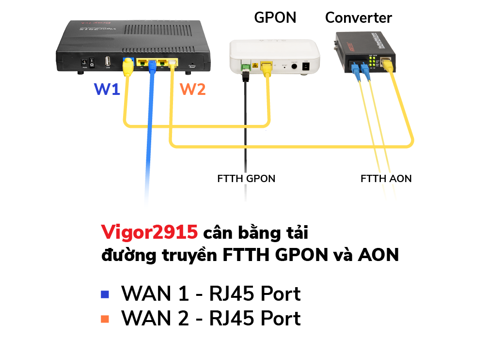 Các mô hình triển khai kết nối nhiều đường truyền để chạy Load Balancing và Backup DRAYTEK VIGOR2915
