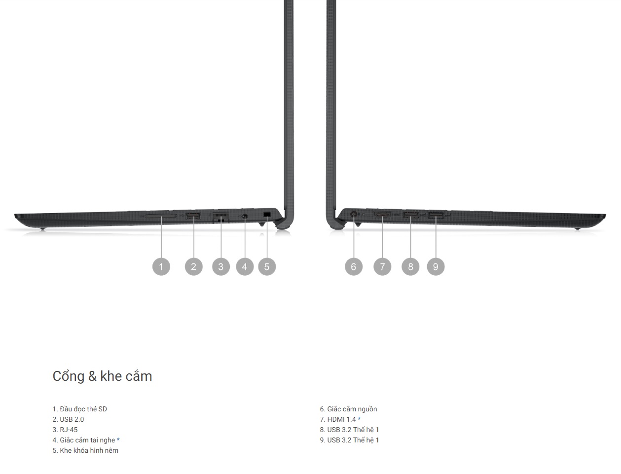 | Cổng giao tiếp | 2 USB 3.2 Gen 1 port 1 USB 2.0 Type-A port 1 4.5 mm x 2.9 mm DC-in port 1 HDMI 1.4 port 1 Audio Jack |