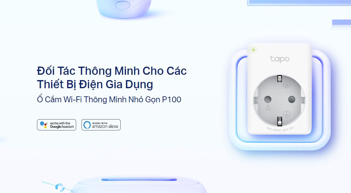 Ổ cắm thông minh Tapo P100(1-pack) với tính năng điều khiển bằng giọng nói hiện đại. Có thể quản lý ổ cắm của bạn với giọng nói thông qua Amazon Alexa và trợ lý Google.